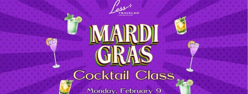 Guests will learn the art of festive mixology while creating two Mardi Gras-inspired cocktails.